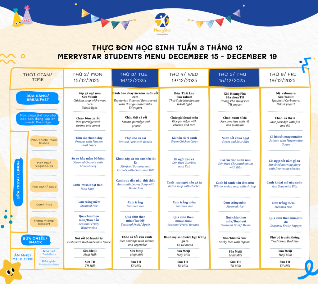 THỰC ĐƠN TUẦN 3 THÁNG 12/2025