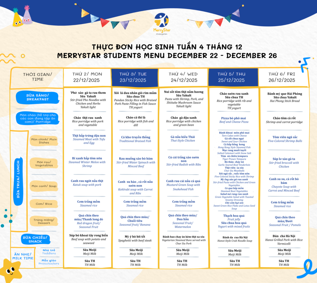 THỰC ĐƠN TUẦN 4 THÁNG 12/2025