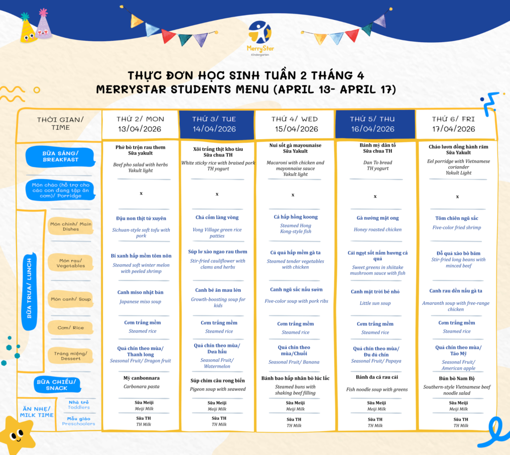 THỰC ĐƠN TUẦN 2 THÁNG 4/2026